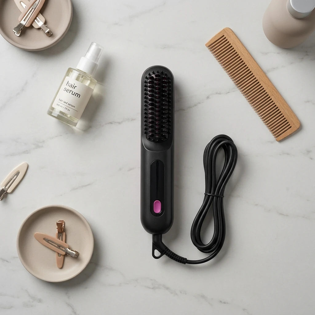 Pour des résultats optimaux et la protection de vos cheveux, nous recommandons d'utiliser la Brosse Lissante Courte Pro sur cheveux secs. Cela garantit une coiffure parfaite et préserve la santé de votre chevelure.